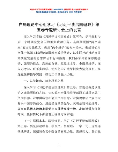 / 在局理论中心组学习《习近平谈治国理政》第五卷专题研讨会上的发言