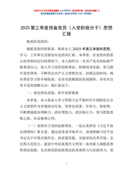 / 2025第三季度预备党员(入党积极分子)思想汇报
