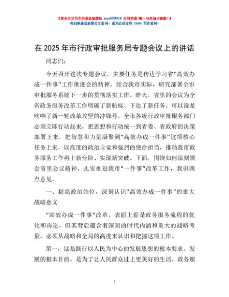 / 在2025年市行政审批服务局专题会议上的讲话