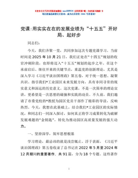 / 党课:用实实在在的发展业绩为“十五五”开好局、起好步