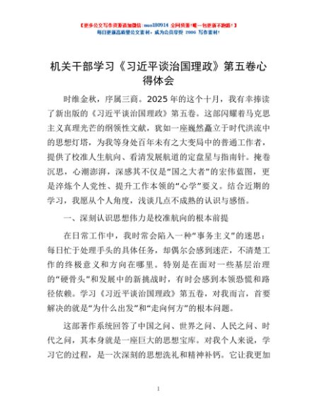 / 机关干部学习《习近平谈治国理政》第五卷心得体会