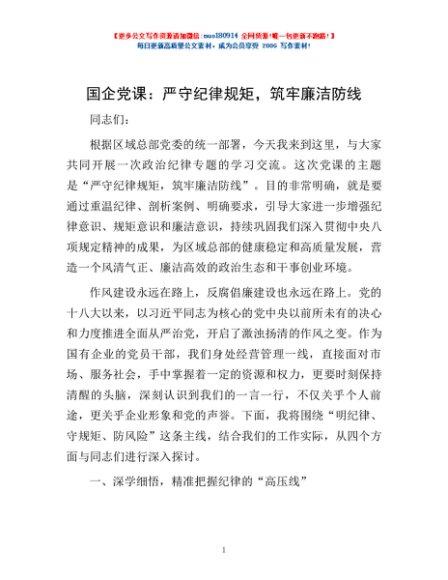 / 国企党课:严守纪律规矩,筑牢廉洁防线
