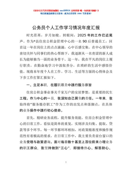 / 公务员个人工作学习情况年度汇报