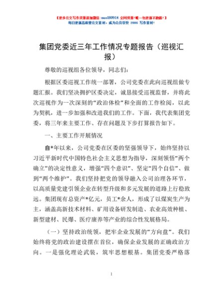 / 集团党委近三年工作情况专题报告(巡视汇报)