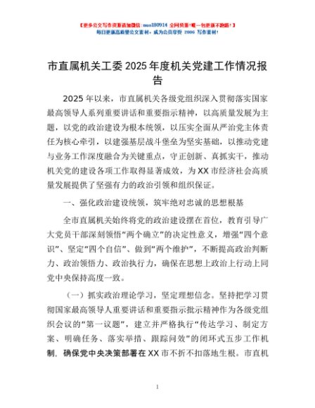 / 市直属机关工委2025年度机关党建工作情况报告