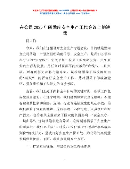 / 在公司2025年四季度安全生产工作会议上的讲话