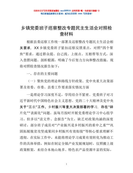/ 乡镇党委班子巡察整改专题民主生活会对照检查材料