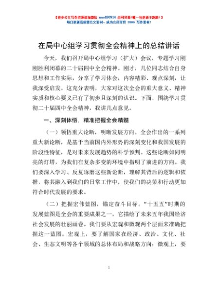 / 在局中心组学习贯彻全会精神上的总结讲话