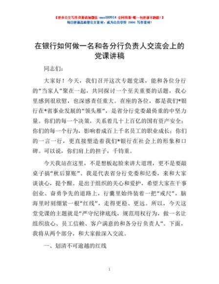 / 在银行如何做一名和各分行负责人交流会上的党课讲稿