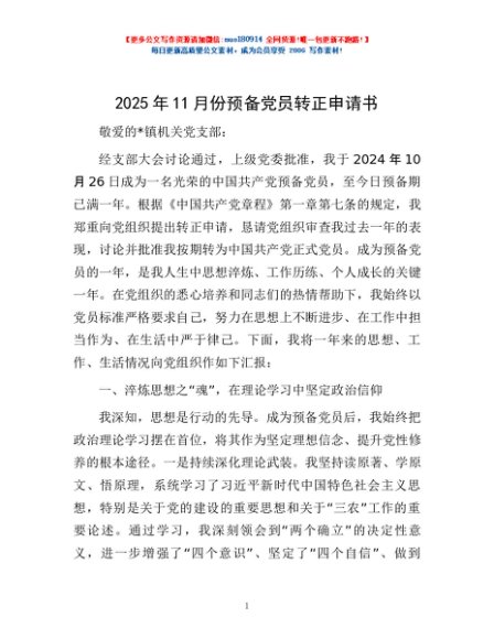 / 2025年11月份预备党员转正申请书
