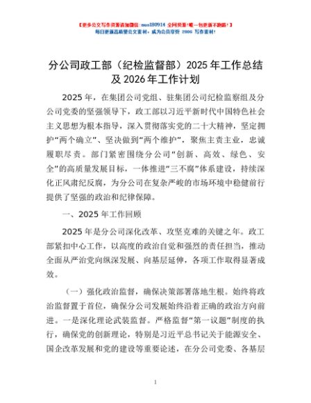 / 分公司政工部(纪检监督部)2025年工作总结及2026年工作计划