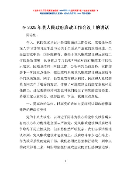 / 在2025年县人民政府廉政工作会议上的讲话