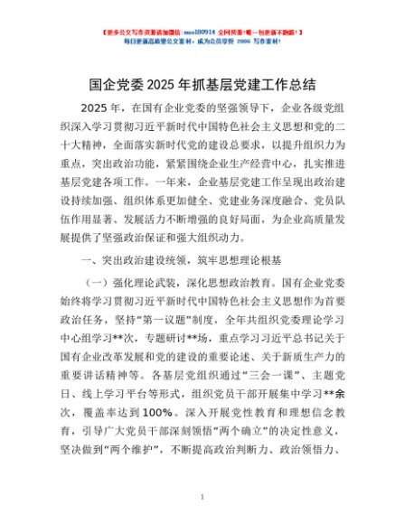 / 国企党委2025年抓基层党建工作总结