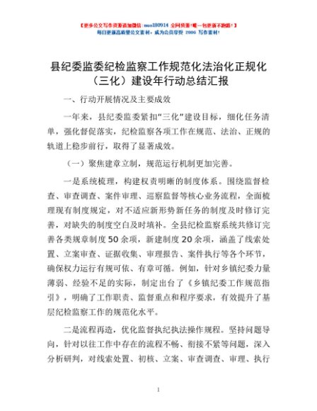 / 县纪委监委纪检监察工作规范化法治化正规化(三化)建设年行动总结汇报