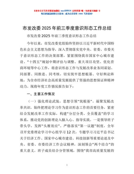 / 市发改委2025年前三季度意识形态工作总结