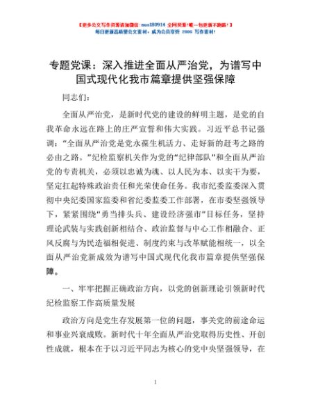 / 专题党课:深入推进全面从严治党,为谱写中国式现代化我市篇章提供坚强保障