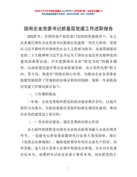/ 国有企业党委书记抓基层党建工作述职报告