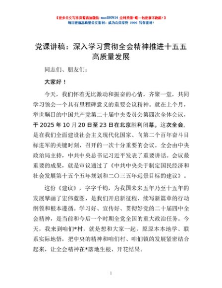 / 党课讲稿:深入学习贯彻全会精神 推进十五五高质量发展
