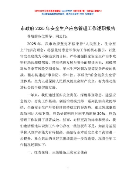 / 市政府2025年安全生产应急管理工作述职报告