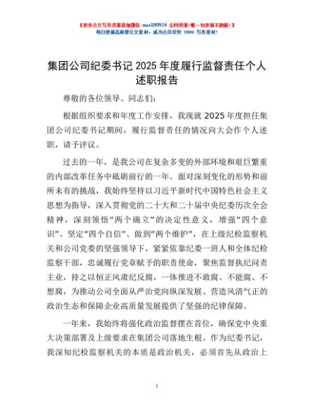 / 集团公司纪委书记2025年度履行监督责任个人述职报告