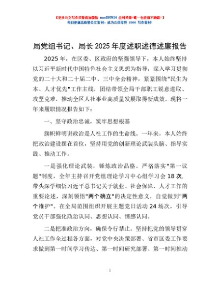 / 局党组书记、局长2025年度述职述德述廉报告