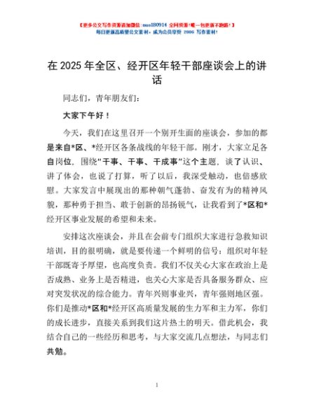 / 在2025年全区、经开区年轻干部座谈会上的讲话
