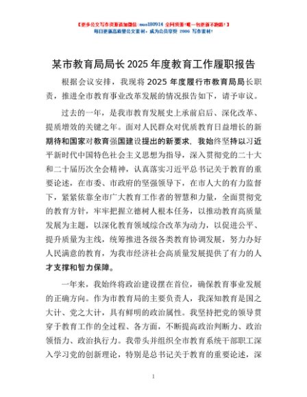 / 某市教育局局长 2025 年度教育工作履职报告