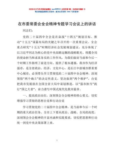 / 在市委常委会全会精神专题学习会议上的讲话