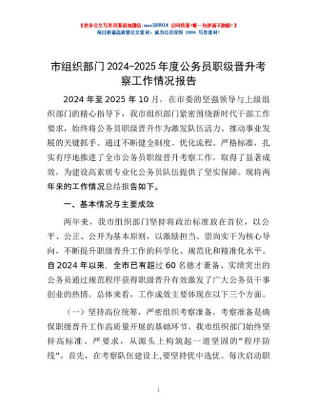/ 市组织部门2024-2025年度公务员职级晋升考察工作情况报告
