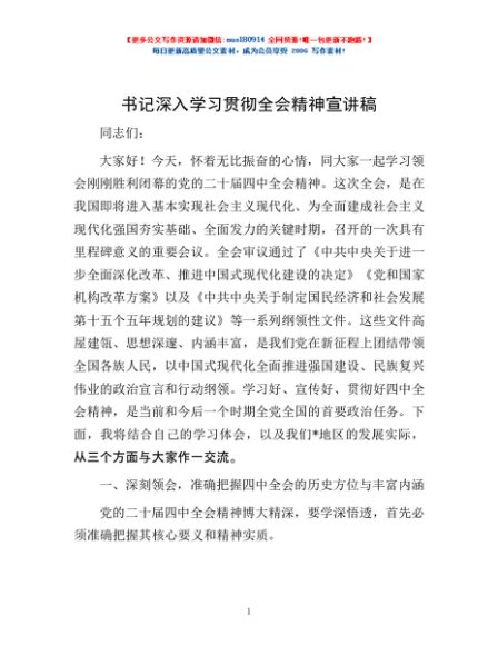 书记深入学习贯彻全会精神宣讲稿