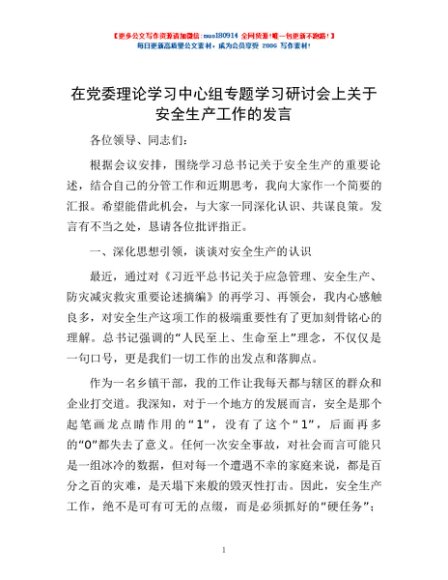 / 在党委理论学习中心组专题学习研讨会上关于安全生产工作的发言
