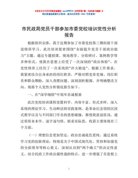 / 市民政局党员干部参加市委党校培训党性分析报告