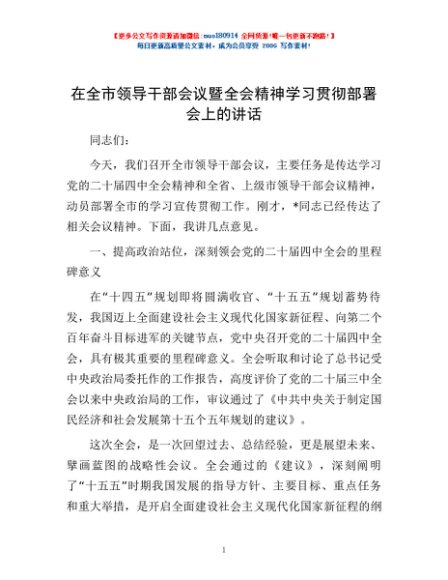 / 在全市领导干部会议暨全会精神学习贯彻部署会上的讲话