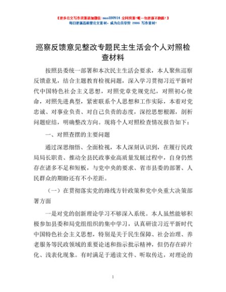 / 巡察反馈意见整改专题民主生活会个人对照检查材料
