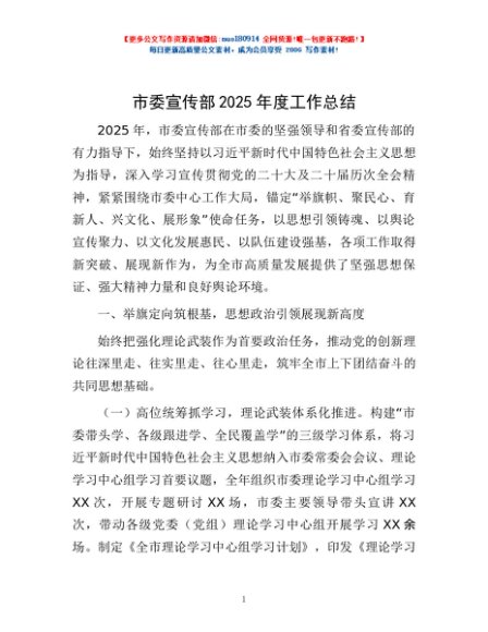 / 市委宣传部2025年度工作总结