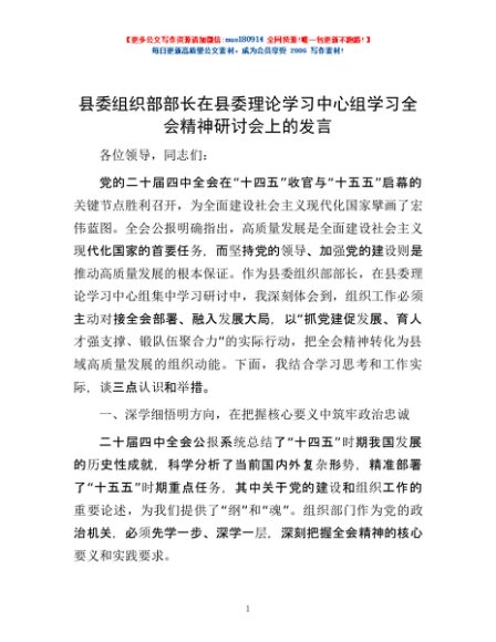 / 县委组织部部长在县委理论学习中心组学习全会精神研讨会上的发言