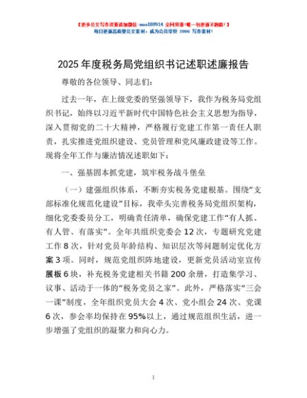 / 2025年度税务局党组织书记述职述廉报告