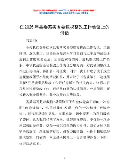 / 在2025年县委落实省委巡视整改工作会议上的讲话