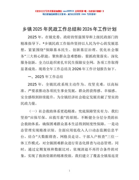 / 乡镇2025年民政工作总结和2026年工作计划