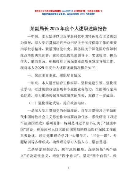 / 某副局长2025年度个人述职述廉报告