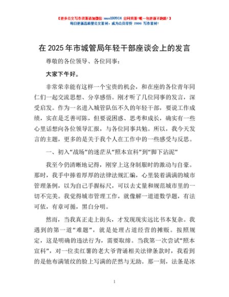 / 在2025年市城管局年轻干部座谈会上的发言