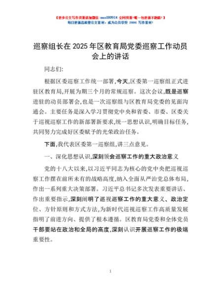 / 巡察组长在2025年区教育局党委巡察工作动员会上的讲话