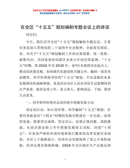 / 在全区“十五五”规划编制专题会议上的讲话