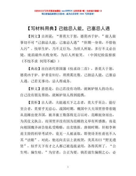 / 【写材料用典】己拙忌人能,己塞忌人遇
