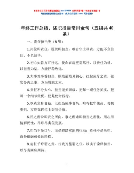 / 年终工作总结、述职报告常用金句(五组共40条)
