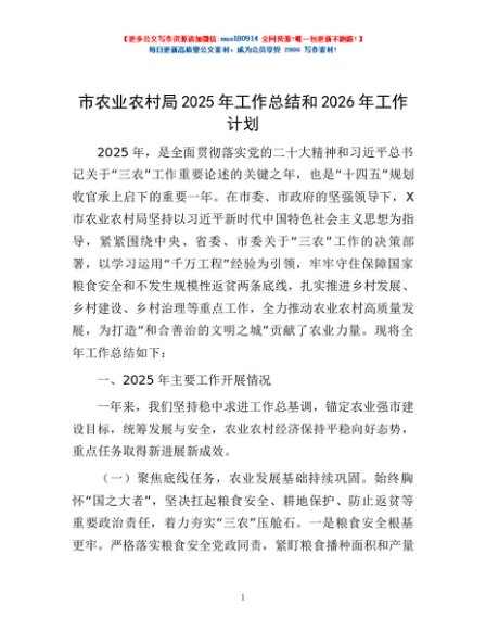 / 市农业农村局2025年工作总结和2026年工作计划