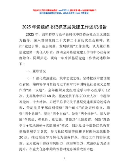 / 2025年党组织书记抓基层党建工作述职报告