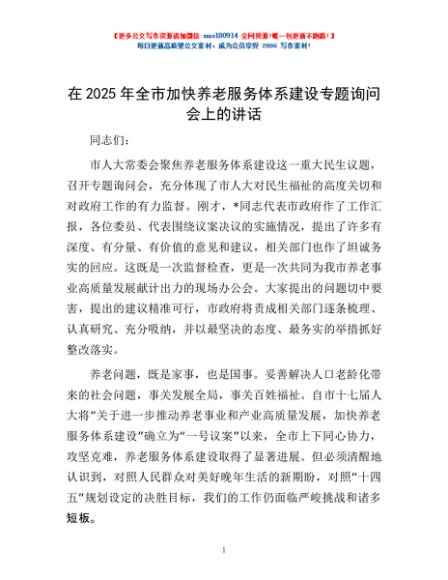 / 在2025年全市加快养老服务体系建设专题询问会上的讲话