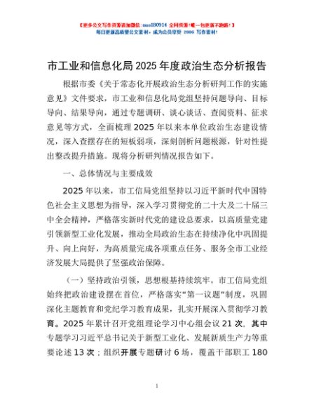/ 市工业和信息化局2025年度政治生态分析报告