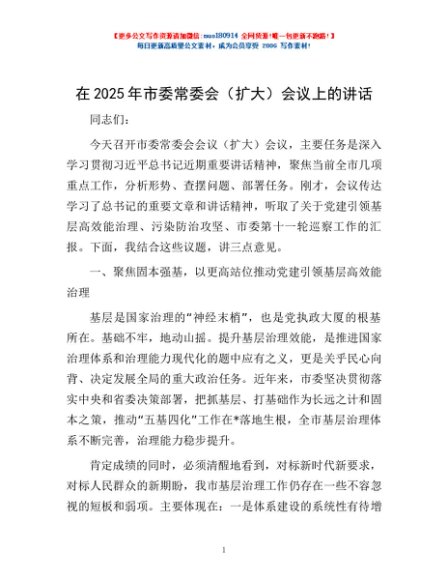 / 在2025年市委常委会(扩大)会议上的讲话